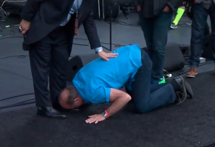 In one video in front of an audience of young adults Engle talks about the Avengers movie “if that is not a mt.16 movie I don’t know what is. Two or three united together – whatever they pray. Listen, the guy that’s the most selfish sacrifices his life closes the portal to demons (one really needs to see how he is acting as he’s telling this)”…. Avengers, a must see for spiritual warfare. And I want to be the Hulk – I mean, I was so moved by that movie when the music’s going and Hulks coming, boom. I start weeping in the movie I’m so moved by the Holy Spirit” Clearly this man should not be considered a teacher on Spiritual warfare OR the Bible. Being the Hulk who has brute strength and little control over his emotions (hulk smash) is not to be anyone’s goal. When we hear things like this we should not be surprised seeing Engle bow and kiss the feet of Roman Catholic leader Matteo Calisi, appointed by Pope Benedict to serve on the Pontifical Council for the Laity. He is doing this while The Catholic representative is speaking of unity. Lou Engle kissing the feet of a Pope Benedict appointee (screenshot) – https://www.youtube.com/watch?v=GrV1G5rVzXs The evangelist prayer warrior Lou Engle kisses the feet of one who represents the world’s largest false teacher of a church, the Pope. These people have no problem uniting with Rome and its Pope, the most corrupt of any church. The together Meeting At 1 hour 58 minutes https://www.youtube.com/watch?v=DyNTdXPndlk&feature=youtu.be ) Nick listens to a Catholic tell him on Eph.4:4-5 on the body united under the head that is the basis for our unity. Nick says amen to This. What was missing is that the head of the Catholic church is the Pope, so does he know what he is amening? Nick admonishes the people, saying we should get to know each other instead of judging from a distance. Isn’t that what Paul did when he wrote his letters to the Corinthians? So can we judge what is right and wrong after we get to know each – or not at all? Lou Engle follows saying Americas in crises (as are the nations), So clear from the Scriptures- he goes to Joel 2 as God’s remedy is blow the trumpet in zion, call a fast, gather the elders, gather the children - He said you have to be willing to drop denominational gender barriers race barriers you must be willing to call upon me with fasting and prayer.” Lou needs to read his bible more carefully God’s warning is the trumpet, the remedy is repentance . which is the direction these men are not leading them into. Drop gender barriers? Where did God say this? The he prays for God to release the grace of unity… over the denominations, then talks about the sound of the trumpet being heard by the church and through Nick, let the sound of the trumpet blow and let your body respond with unity. So is God warning us about not being in unity? Or is God telling us to separate from those who do not hold the doctrine of Christ? My question is, does Reset change everything or does Jesus Changes Everything? Which reset button is being pushed. Can the church survive so much unity talk without learning to be grounded in the Scriptures?